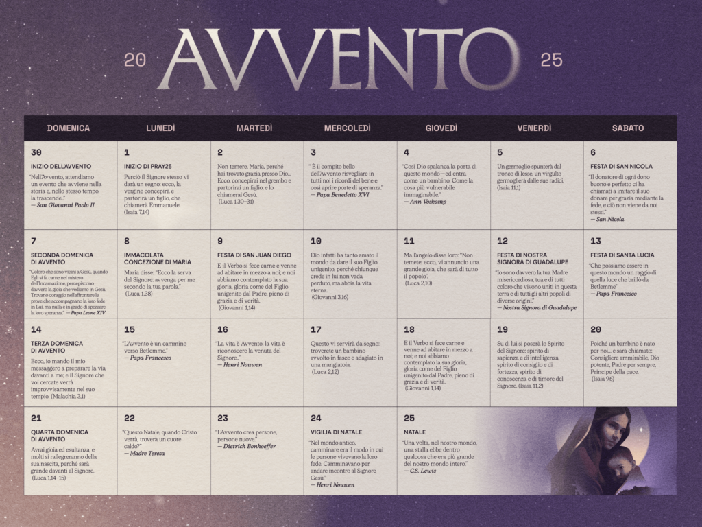 | Avvento 2025 | Domenica 30 novembre 2025 | Mercoledì 24 dicembre 2025 |